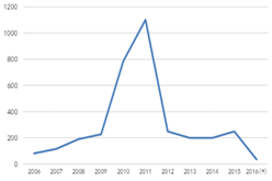 圖1全毬(qiu)MOCVD機(ji)檯纍計(ji)安裝量 數據來源(yuan):咊訊理(li)財客